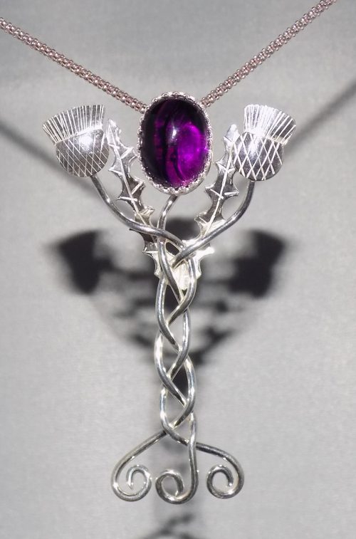 Amethyst stone in Sterling Silver Thistles